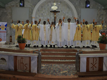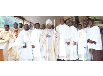 The Newly Ordained with the Ordaining Bishop, Bishop Ernest Obodo, and other Priests.