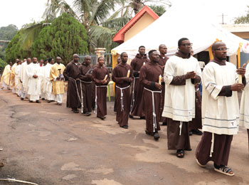 The Friars in procession during the Mass of Final profession, Silver Jubilee anniversary, and the celebration of the 40 years of the presence of the Capuchins in Nigeria. September 28th, 2024.