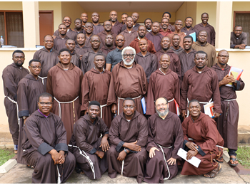 The friars at St. Francis and St. Clare Friary, Ridgeway, Enugu State, pose for a selfie with the General Minister, Friar Roberto Genuin, OFM Cap, who visited with the Definitor for Africa, Friar Kilian Ngitir OFM Cap.
