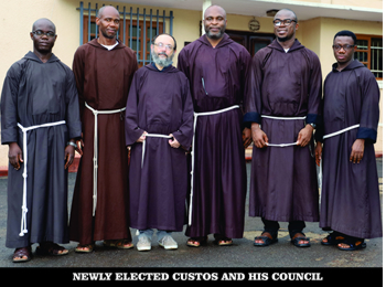 Provincial Minister poses with the returning Custos and his newly elected council members.