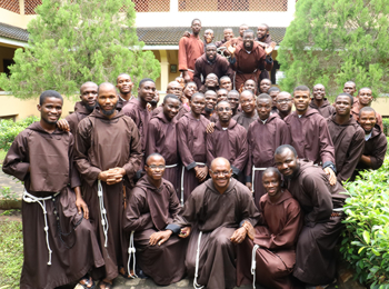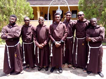 The newly perpetually professed brothers with a cross-section of those who concelebrated or assisted at the Mass which took place on 14th July, 2018 at St. Francis and St. Clare Friary, Ridgeway, Enugu.