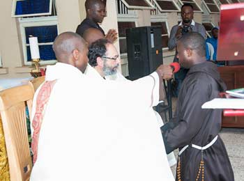 Br. Kingsley Ezeanubekwe blesses his extended family during the Mass of Thanksgiving.