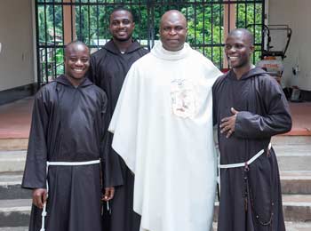 The newly ordained, Br. Kingsley Ezeanubekwe with the Custodian, Br. James Okafor, and his director, Br. Michael Nkwocha after the ordination